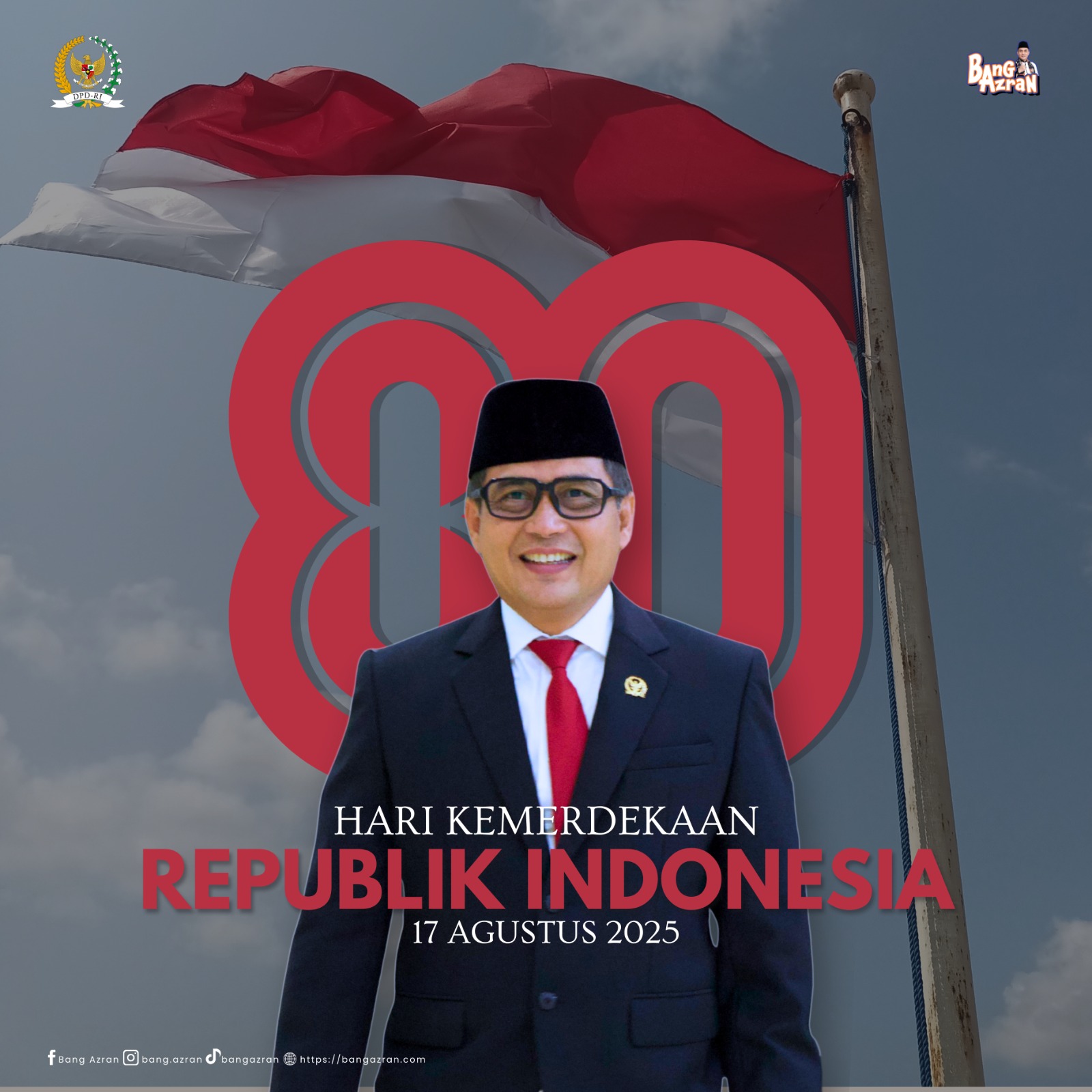 JAKARTA - Momen Hari Kemerdekaan Indonesia ke-80, Minggu (17/8/2025), dijadikan anggota Dewan Perwakilan Daerah (DPD) RI Dapil Jakarta, Achmad Azran, sebagai momen untuk mempertegas komitmennya membela masyarakat.